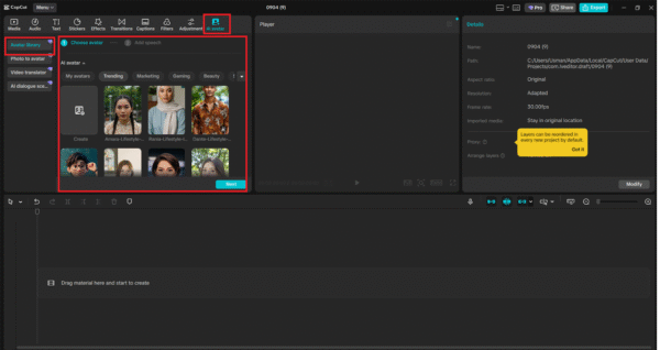 It could be quite a complex process to create a virtual influencer, but CapCut makes it easier. Its avatar creation section allows you to create realistic-looking digital characters with a voiceover, whereas the AI-graded image generator allows you to design your own special backgrounds and images to help narrate a story.