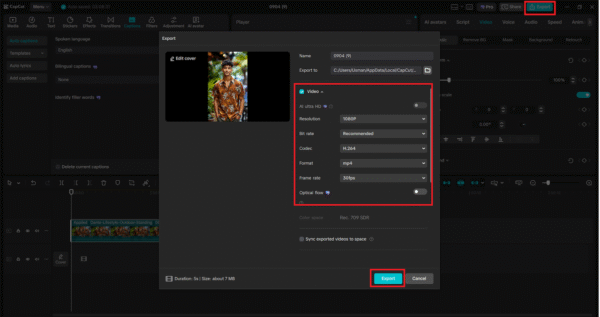 Your video is ready; you can export it in the upper-right corner. Select a resolution (1080p or 4K to produce a social media-quality image), assign a file name, and select Export (once more). At this point, you can now share the first video of your influencer on TikTok, Instagram, or YouTube.