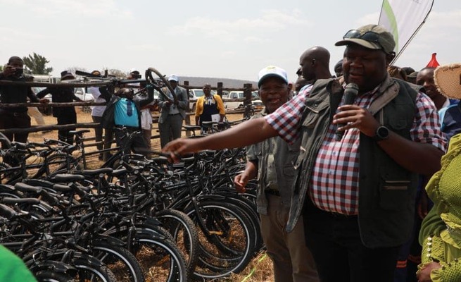 The bicycles were formally presented to attendants at the Chinyabowa dip tank on Wednesday. The event was officiated by Lands Permanent Secretary Dr. John Basera.