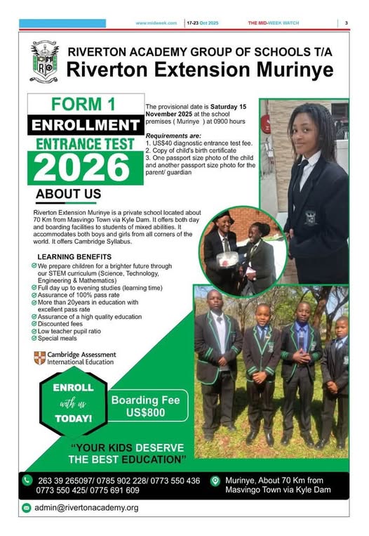 Meanwhile, as schools open for the 2026 first term, the Zimbabwe Republic Police (ZRP) has issued a strong appeal to parents, guardians, school authorities, and transport operators to prioritise the safety and security of learners.