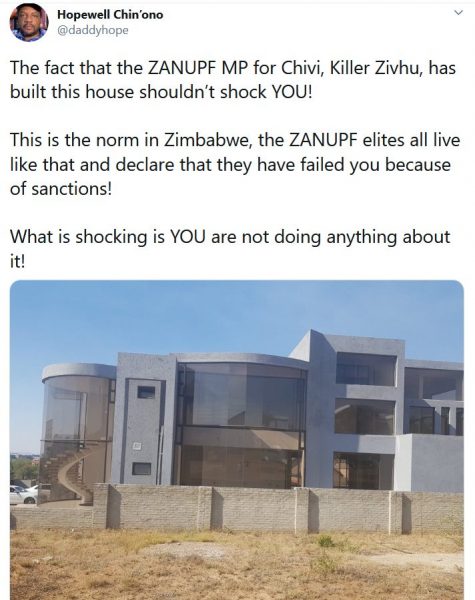 Screenshot_2020-05-03 (21) Hopewell Chin’ono on Twitter The fact that the ZANUPF MP for Chivi, Killer Zivhu, has built this[…]