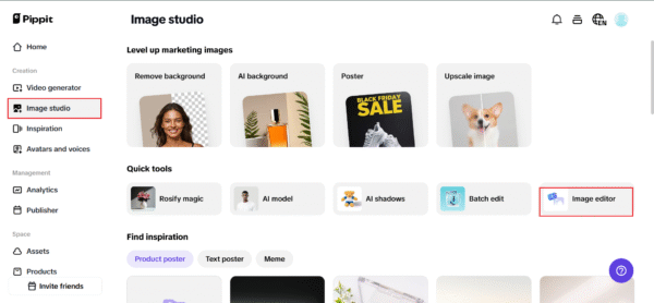 Try it for free by logging into Pippit and navigating to the ‘Image Studio.’ Upload your PNG file into the ‘Image Editor’ section. This unlocks simple but powerful tools that make resizing clear and stress-free — no design degree needed.