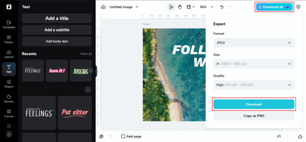 Use the preview feature to check for squished edges, fuzziness, or accidental background fills. Make any last tweaks, then click ‘Export’ to download your resized PNG in high resolution — transparency intact, ready to shine on any platform.